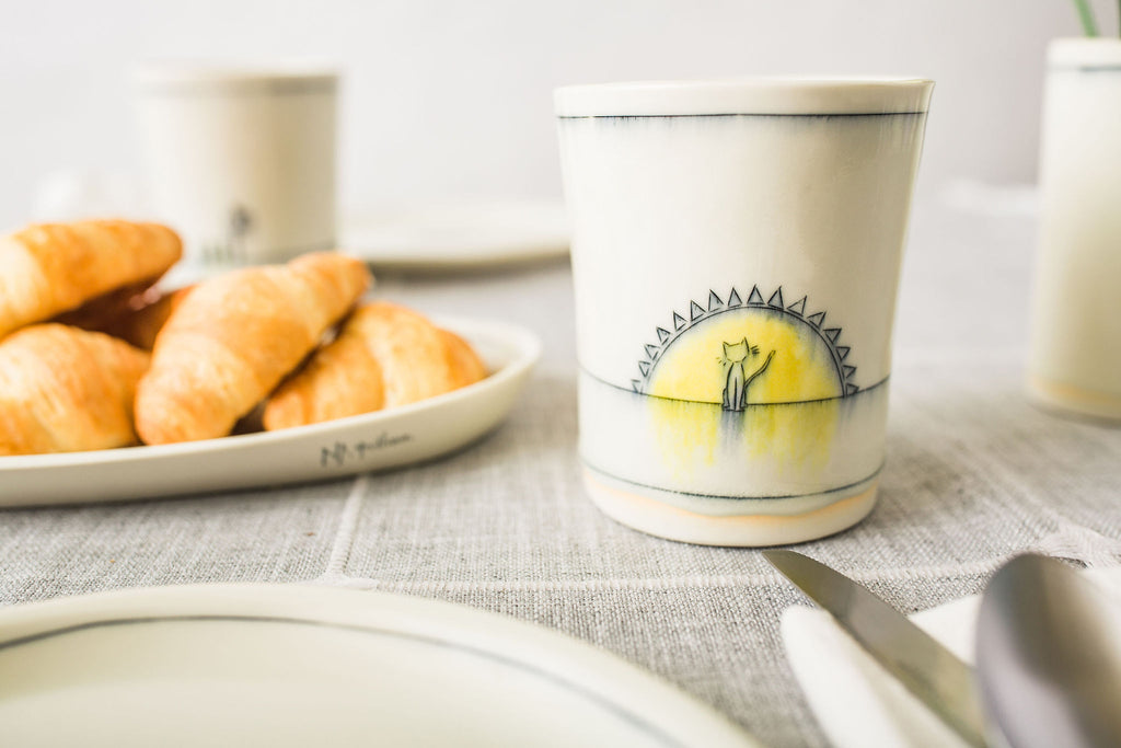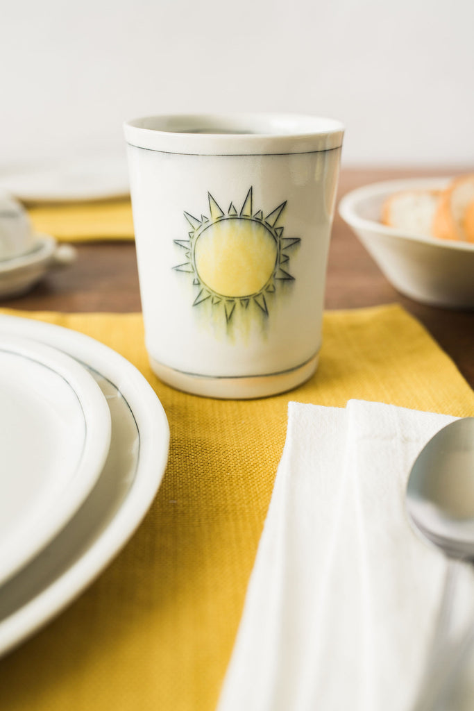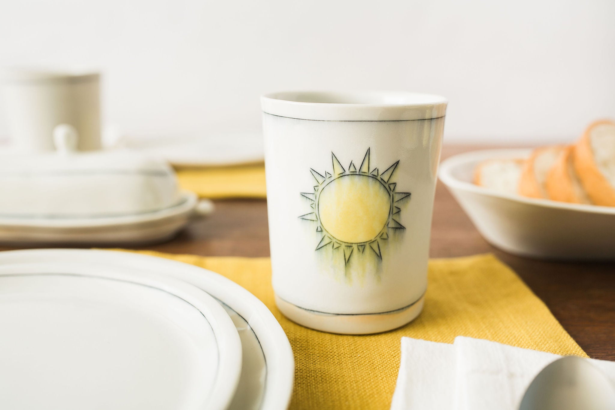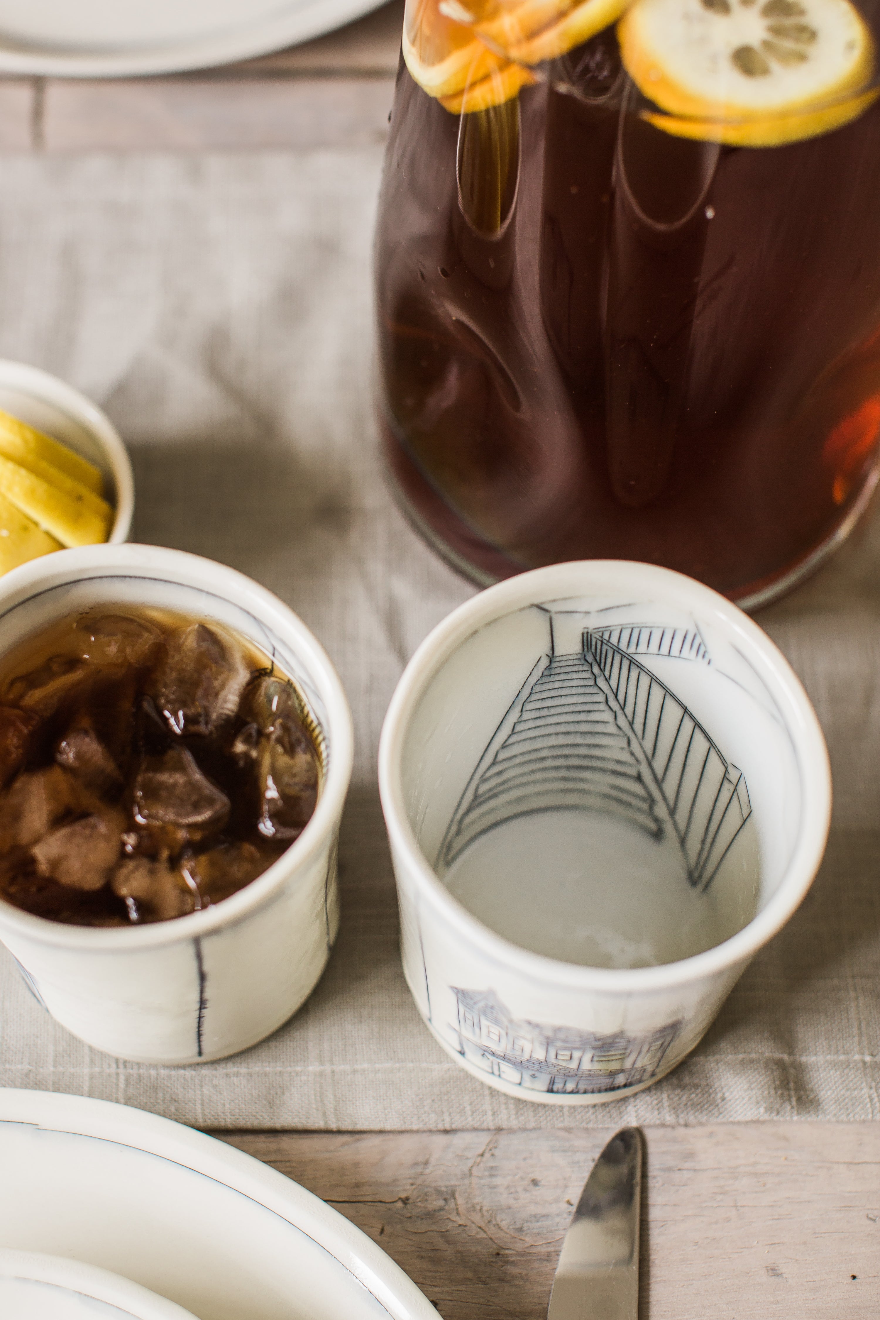 Choose your favorite images to create a collection of tumblers reminiscent of your own personal narrative! Each image is hand drawn directly into the porcelain clay with a knife, and the etching is inlaid with a dark underglaze. The high temperature of the kiln combined with a clear glaze overlay slightly blurs the drawing, much like a faded memory. Each piece is a one-of-a-kind work of art reminiscent of the places and experiences that define and connect us all.